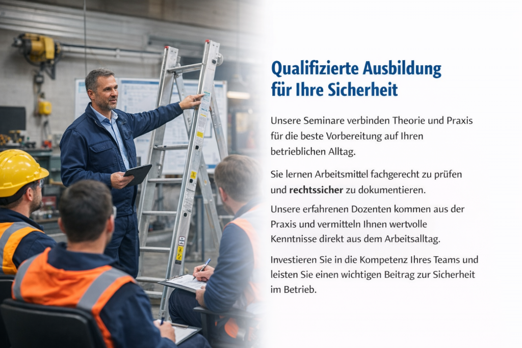 Die UVV-Prüfer Ausbildung auf dem HandwerksCampus ist modular aufgebaut und ermöglicht Ihnen eine gezielte Erweiterung Ihrer Qualifikation. Sie beginnen mit dem Grundkurs zur befähigten Person und können anschließend Ihre Prüfbefugnis für weitere Arbeitsmittel wie Leitern, Regalanlagen, PSA gegen Absturz oder kraftbetätigte Tore erweitern. Dadurch entwickeln Sie Schritt für Schritt umfassende Fachkompetenz und können die Sicherheit in Ihrem Unternehmen nachhaltig verbessern. Unsere Seminare sind speziell für die Anforderungen im Handwerk und in der Industrie konzipiert und lassen sich flexibel in den betrieblichen Alltag integrieren.